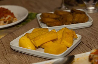 Bauru, Entrecot Grelhado, Bife a milanesa de Frango, queijo frito, polenta, variedades de saladas.